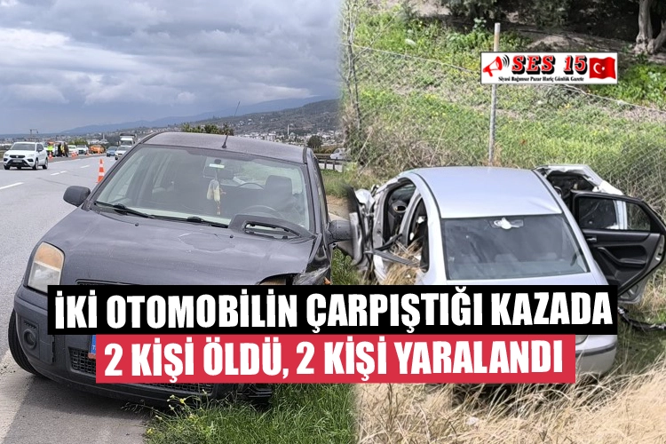 Hatay'ın Dörtyol ilçesinde iki otomobilin çarpışması sonucu 2 kişi hayatını kaybetti, 2 kişi yaralandı.