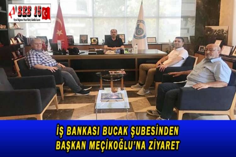 Türkiye İş Bankası A.Ş. Bucak Şubesi Müdürlüğü’ne atanan Mehmet Halil Şahin ve İş Bankası Bucak Portföy Yöneticisi Hamza Serkan Yılmaz ile birlikte Bucak Ticaret ve Sanayi Odası Yönetim Kurulu Başkanı Hasan Yalçın Meçikoğlu’nu makamında ziyaret etti. Ziyaretten duyduğu memnuniyeti dile getiren Başkan Meçikoğlu; İş Bankası Bucak Şubesi yetkililerine teşekkür ederek, çalışmalarında kolaylıklar diledi.