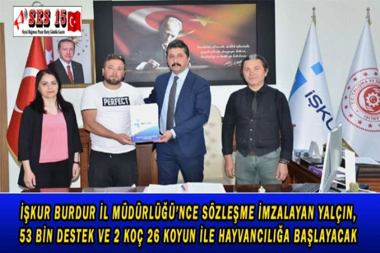 İŞKUR Hibe Destekleri Devam Ediyor Kendi İşini Kurma Projesi kapsamında, İŞKUR'a sunulan projesinin komisyon tarafından onaylanmasının ardından İŞKUR İl Müdürlüğü’nde sözleşme imzalayan Uğur Yalçın, Kuruluş Desteği için verilecek 53.620 TL ve alacağı 2 koç, 26 koyun ile hayvancılığa başlayacak. Burdur Çalışma ve İş Kurumu Burdur İl Müdürü Yunus Emre Akalın, “Engelli ve Eski Hükümlü Kendi İşini Kurma Projesi kapsamında projesi onaylanan Uğur Bey’in sözleşmesini imzalamış bulunuyoruz. Kendisine toplamda 28 küçükbaş hayvan kazandırılacak ve Projenin takibi İŞKUR tarafından yapılacaktır. Uğur Bey, koyunları 3 yıl boyunca satamayacak, kesimini yapamayacak. Koyunlar sigortalı olup, 3 yıl sonra hayvanlar tamamen Uğur Yalçın’ın olacaktır. İŞKUR olarak yeni istihdam sağlayacak projeleri desteklemeye devam edeceğiz. Uğur Yalçın’a hayırlı uğurlu olmasını diliyoruz “dedi. Uğur Yalçın, kendisine sağlanan imkan sayesinde hayata yeniden tutunmasını sağlayan, severek yapacağı hayvancılığa başlayacağı için çok mutlu ve heyecanlı olduğunu kaydetti.
