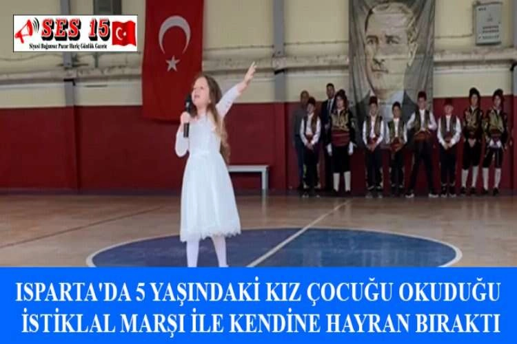 Isparta'da 19 Mayıs Atatürk'ü Anma, Gençlik ve Spor Bayramı etkinlikleri kapsamında İstiklal Marşı'nın 10 kıtasını ezbere söyleyen 5 yaşındaki Öykü Ela Nayır, kendisini hayran bıraktı. İl ve ilçelerinde bayram coşkusu çeşitli etkinliklerle kutlandı. Senirkent Spor Salonu'nda öğrenciler tarafından gösteriler düzenlendi. Zübeyde Hanım Anaokulu öğrencilerinden 5 yaşındaki Öykü Ela Nayır, İstiklal Marşı'nın 10 kıtasını ezbere okudu. Hareketleri ve coşkusuyla kendisini dinleyenleri hayran bırakan Nayır, salonda herkesin beğenisini kazandı. AA