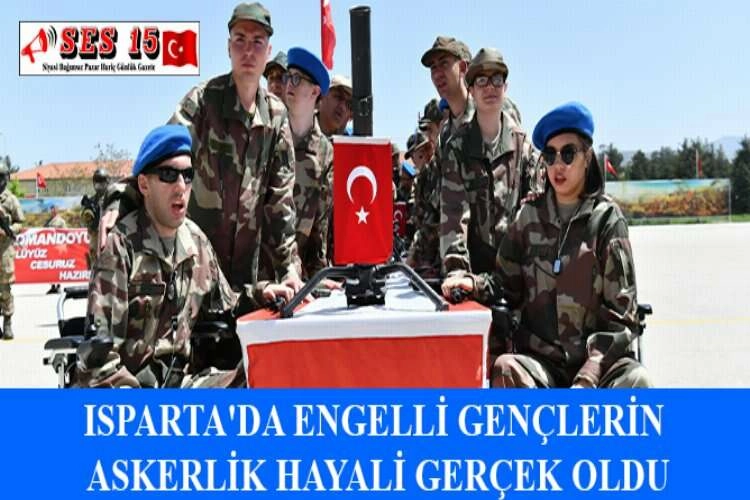 Isparta'da yaşayan ve asker olma hayali kuran 48 engelli genç, bir günlüğüne askerlik heyecanı yaşadı. Terörizmle Mücadele Eğitim ve Tatbikat Merkezi Komutanlığına aileleriyle gelen engelli gençlere, askeri üniformaları ve botları giydirildi. Engelliler, Türk bayrağı ve silaha ellerini koyarak yemin etti. Törende, 2 engelli tarafından yaş kütüğüne plaket çakıldı. Isparta Valisi Aydın Baruş, engelli gençlere terhis belgelerini verdi. Törene, Garnizon Komutanı Albay Mustafa Kahraman da katıldı. AA