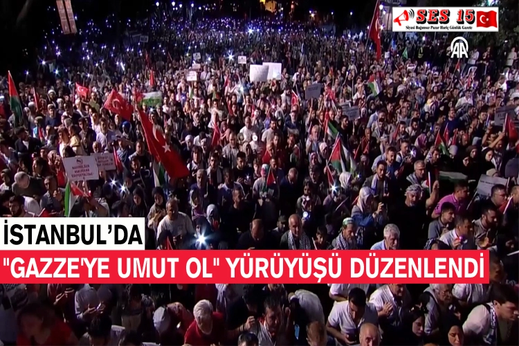 Filistin'e Destek Platformu'nu oluşturan sivil toplum kuruluşlarının, İsrail'in Gazze'de sürdürdüğü saldırılara ve ablukaya karşı dünya kamuoyunun dikkatini çekmek amacıyla "Gazze'ye Umut Ol" sloganıyla İstanbul'da düzenledikleri yürüyüş gerçekleştirildi.