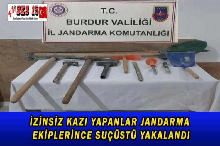 Burdur İl Jandarma Komutanlığı ekipleri, Bucak Cumhuriyet Başsavcılığı ile koordineli olarak, kültür ve tabiat varlıklarının korunması, tarihi eser kaçakçılığının önlenmesine yönelik yürütülen çalışmalar kapsamında Bucak Ürkütlü Köyü, Bozburun Mevkiinde bulunan 1.derece Arkeolojik Sit alanında izinsiz kazı yapan şahısları suçüstü yakaladı. Konuyla ilgili olarak Burdur Valiliği tarafından yapılan açıklama şöyle; “Güvenlik güçlerimiz tarafından İlimiz genelinde kültür ve tabiat varlıklarının korunması ve tarihi eser kaçakçılığının önlenmesi yönelik yürütülen çalışmalara aralıksız devam edilmektedir. Bu kapsamda İl Jandarma Komutanlığı ekipleri, Bucak Cumhuriyet Başsavcılığı ile koordineli olarak, 2863 Sayılı Kültür ve Tabiat Varlıklarını Koruma Kanununa muhalefet suçları ile mücadele kapsamında 22.11.2021 tarihinde (H.K.), (Y.A.) ve (İ.Z.) isimli şahısların izinsiz kazı yapacağı bilgisi alınmıştır. Elde edilen bilgiler doğrultusunda yapılan araştırma ve fiziki takip sonucunda; Burdur İli, Bucak İlçesi, Ürkütlü Köyü, Bozburun Mevkiinde bulunan 1.derece Arkeolojik Sit alanında izinsiz kazı yapan (H.K.), (Y.A.) ve (İ.Z.) isimli şahıslar (2) adet kürek, (2) adet kazma, (1) adet balyoz, (1) adet manivela, (1) adet levye, (1) adet çekiç, (2) adet murç, (1) adet küçük çapa, (2) adet büyük çapa ve (1) çift eldiven ile birlikte suçüstü yakalanmışlardır. Cumhuriyet Savcısının kararıyla gözaltına alınan (H.K.), (Y.A.) ve (İ.Z.) isimli şüpheli şahıslar sevk edildikleri adli makamlarca adli kontrol şartıyla serbest bırakılmışlardır. Kamuoyuna saygıyla duyurulur”.
