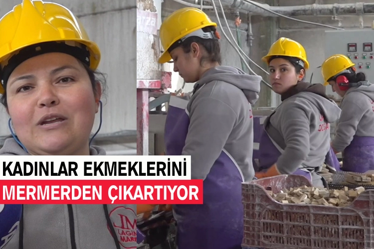 Sanayi sektörünün ağır, gürültülü ve tozlu iş kolu olan mermer fabrikalarında çalışan kadınlar işlerini titizlikle yapıyor.