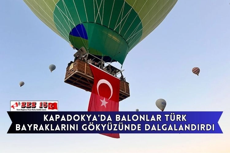 Kapadokya'da balonlar Türk bayraklarını gökyüzünde dalgalandırdı