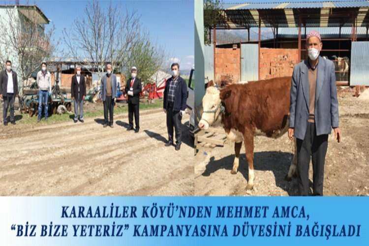 Burdur’un Bucak İlçesi’ne bağlı Karaaliler Köyü’nde yaşayan 70 yaşındaki Mehmet Kozak, Cumhurbaşkanı Recep Tayyip Erdoğan tarafından başlatılan Milli Dayanışma Kampanyasına düvesini bağışladı. 1 yaşındaki düvesini “Biz Bize Yeteriz” kampanyasına bağışlayan Mehmet Amca, kampanyaya herkesin destek olması gerektiğine vurgu yaptı. Düve Bucak’ta Kasaplık yapan Ahmet Özcan’a 6.500 TL karşılığında satıldı ve alınan ücret kampanyaya makbuz karşılığı bağışlandı. Bağışın Vefa Sosyal Destek Grubuna verilmesi, Koronavirüsle mücadele konusunda uygulanan tedbirler konusunda Sosyal mesafe kurallarına dikkat edilen programla bugün gerçekleşti. 65 yaş üzeri olan ve sokağa çıkması kısıtlı olan Ahmet Amca’dan düvenin nakdi karşılığını Ziraat Bankası Bağış hesaplarına yatırmak üzere Vefa Sosyal Destek Grubu temsilcileri teslim aldı. Bağış hakkında bilgi veren Çiftçi Mehmet Kozak, Cumhurbaşkanı Erdoğan tarafından başlatılan Milli Dayanışma kampanyasına destek vermekten onur duyduğunu belirterek; “Kampanyaya Milletçe destek vermeliyiz” dedi. Daha sonra Çiftçi Mehmet Kozak ile Tüccar Ahmet Özcan arasında pazarlık yapılarak düvenin maddi karşılığı belirlendi. Düveye karşılık verilen 6.500 TL Mehmet Kozak tarafından makbuz karşılığı kampanyaya bağışlandı. Bucak Kaymakamlığı Vefa Sosyal Destek Grubunda görevli Tarım ve Orman İlçe Müdürü Ahmet Gönenç, düvenin maddi karşılığı olan 6500 TL’yi teslim aldıklarını belirterek kampanyaya destek veren Çiftçi Mehmet Amca ve Eşi Safiye Teyze’ye teşekkür etti. Mehmet Kozak’ın Eşi Safiye Kozak, düveyi çocuğu gibi besleyip büyüttüğünü belirterek Milletçe zor günlerde bulunduğumuz bu dönemde herkesin yardım kampanyasına destek vermesini istedi.