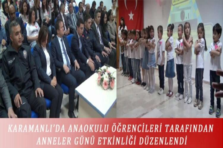 Burdur’un Karamanlı İlçesinde anaokulu öğrencileri ‘Anneler Günü’ etkinliği düzenledi. Nimet Güvener İlkokulu Konferans Salonunda düzenlenen programa Tefenni Kaymakamı ve Karamanlı Kaymakam vekili İlker Eker, Belediye Başkanı Fatih Selimoğlu, kurum müdürleri, öğretmenler, öğrenciler ve anneler katıldı. Etkinlikte konuşan Karamanlı Anaokulu Müdürü İlhami Şahin, her yıl mayıs ayının ikinci Pazar gününde kutlanan Anneler Gününün, Türkiye’de 1956 yılından beri kutlandığını söyledi. Şahin “Tarihi uygarlığı, büyük keşifleri, buluşları daha bunlara benzer bütün önemli insanlık olaylarını, yaratanların başında büyük inşalar gelir. Ancak bu büyük inşaları, insanlık alemine hediye edenlerde annelerdir” dedi. Programda öğrenciler tarafından şarkılar ve şiirler söylendi, gösteriler sergilendi. Karamanlı’da eğitim veren okullardaki öğrenciler tarafından Anneler Günü için hazırlanan videolar izlendi. Program renkli görüntülere sahne oldu, katılımcılardan büyük beğeni topladı.