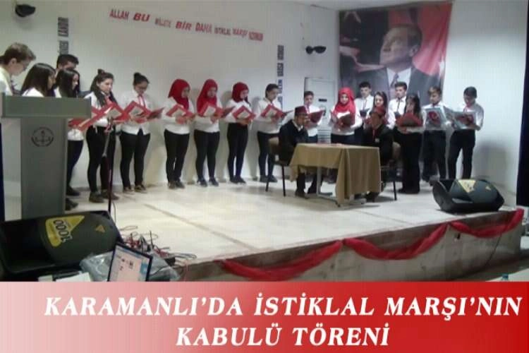 Burdur’un Karamanlı ilçesinde 12 Mart İstiklal Marşı’nın Kabulü ve Mehmet Akif Ersoy’u Anma Günü dolayısıyla program düzenlendi. İlçe Milli Eğitim Müdürlüğü tarafından Nimet Güvener İlkokulu Konferans salonunda düzenlenen programa, Tefenni Kaymakamı ve Karamanlı Kaymakam vekili İlker Eker, Belediye Başkanı vekili Murat Sarıbaş, daire müdürleri, öğretmenler, öğrenciler ve vatandaşlar katıldı. Programda konuşan Karamanlı Anadolu Lisesi Müdürü Kadriye Sarıyar, milletleri millet yapan manevi değerlerin başında bayrak ve milli marşın geldiğini söyledi. Etkinlikte, öğrenciler tarafından şiirler okundu, oratoryo ve tiyatro gösterileri sergilendi. Öğretmenler tarafından türküler seslendirildi. Mehmet Akif Ersoy’un hayatını anlatan sinevizyon izlendi. Daha sonra okullar arasında yapılan çeşitli yarışmalarda dereceye giren öğrencilere, protokol mensupları tarafından ödüller verildi.