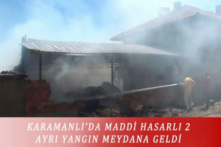 Burdur’un Karamanlı ilçesine bağlı Mürseller ve Manca köylerinde çıkan 2 yangında maddi hasar meydana geldi. Edinilen bilgilere göre, Karamanlı ilçesine bağlı Mürseller köyünde Ömer Demir’e ait evin samanlığında yangın çıktı. Yangını fark eden Ömer Demir’in oğlu Mustafa Demir, köylülerden yardım istedi. İhbar üzerine olay yerine itfaiye, jandarma ve sağlık ekipleri sevk edildi. Mustafa Demir, evde bulunan annesi Elif Demir ile eşi ve oğlunu evden tahliye etti. Ahırda bulunan hayvanlar ise köylülerin yardımıyla ahırdan çıkarıldı. Yangına ilk önce köy muhtarlığına ait itfaiye aracı müdahale etti. Karamanlı, Tefenni, Kemer ilçelerinin itfaiye ekipleri ile orman itfaiye ekipleri de yangın söndürme çalışmalarına katıldı. Elektrik kaçağından çıktığı öğrenilen yangında, samanlar, ahır ve bir otomobil tamamen yandı, samanlığın bitişiğindeki evin zemin katında kısmi zarar oluştu. Öte yandan aynı saatlerde Manca köyünde de yangın çıktığı ihbarının alınmasıyla, itfaiye, jandarma ve sağlık ekipleri Manca köyüne sevk edildi. Ahmet Arı’ya evin samanlığında çıkan yangına, Karamanlı, Tefenni, Kemer İtfaiye Müdürlüğü ekipleri ve Orman İşletme Müdürlüğü ekipleri müdahale etti. Samanlığın bitişiğindeki eve sıçramadan söndürülen yangında samanlar kül oldu. Ahırda ise kısmi zarar meydana geldi. Yangının, kaynak yaparken sıçrayan kıvılcımlardan çıktığı öğrenilirken her iki olayla ilgili olarak soruşturma başlatıldı.