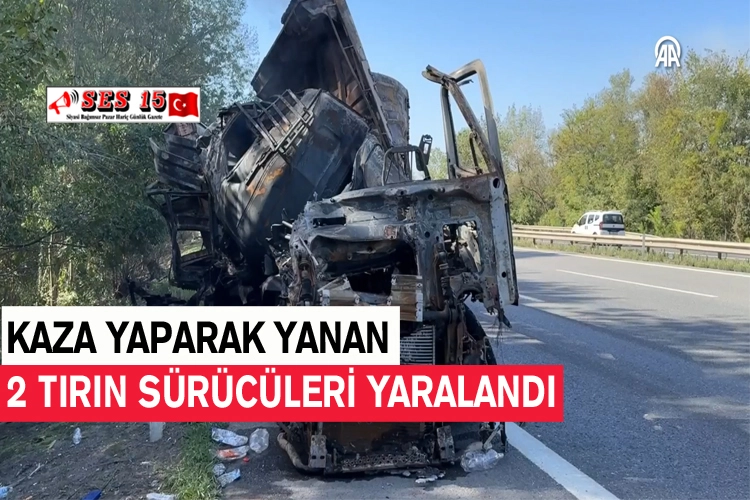 Anadolu Otoyolu'nun Sakarya kesiminde kaza sonrası yangın çıkan 2 tırın sürücüleri yaralandı.