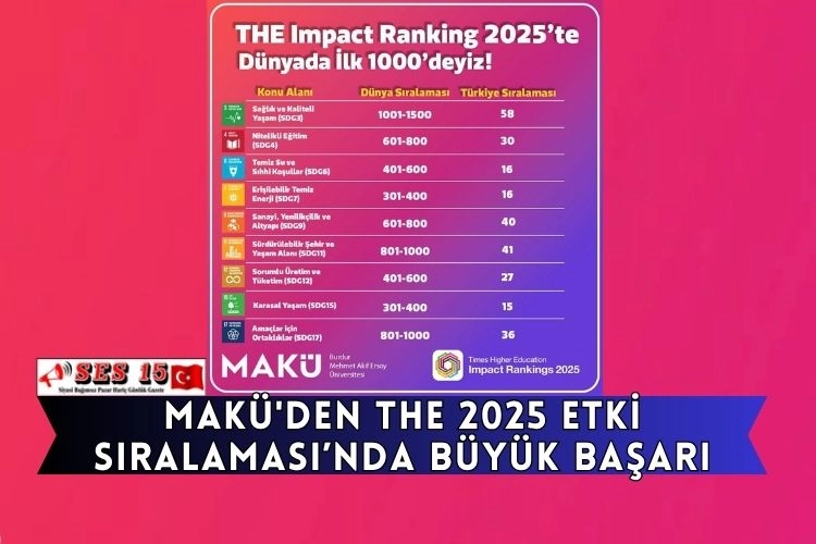 MAKÜ, üniversitelerin toplumsal ve çevresel sorunlara çözüm üretme kapasitelerini Birleşmiş Milletler Sürdürülebilir Kalkınma Amaçları (SDGs) doğrultusunda ölçen sistem olan Times Higher Education (THE) 2025 Etki Sıralaması'nda önemli başarılara imza attı. Bu yıl 130 ülkeden 2,526 üniversitenin başvurduğu sıralamada yer alması, MAKÜ'nün küresel vizyonunu ve toplumsal sorumluluk bilincini bir kez daha ortaya koydu.