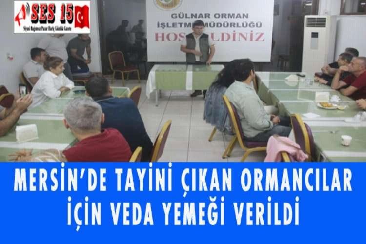Mersin'in Gülnar ilçesinde Orman İşletme Müdürlüğünde görev yapan ve farklı illere tayini çıkan personel için veda yemeği düzenlendi. Gülnar ilçesinde Orman İşletme Müdürlüğü lokalinde düzenlenen yemeğe İşletme Müdürü Serdar Karaca ile tayini çıkan personeller katıldı. Burada konuşan Karaca, "Personellerimize yaptığı çalışmalardan dolayı plaket ve teşekkür belgesi verdik. Gülnar Orman İşletme Müdürlüğümüzden 7 işletme şefi ve orman muhafaza memuru tayin oldu. Yeni görev yerlerinde başarılar dilerim." ifadesini kullandı. AA