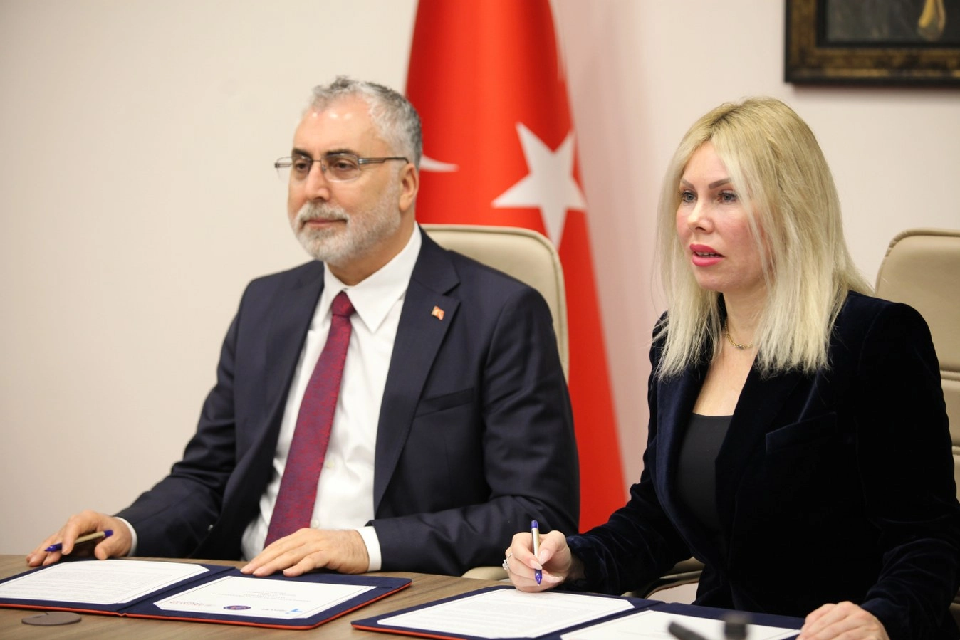 Konuşmaların ardından Bakan Işıkhan ve Rektör Özkan protokolü imzalayarak fotoğraf çektirdi.