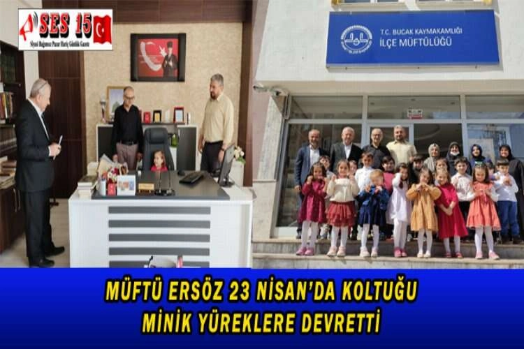 23 Nisan Ulusal Egemenlik ve Çocuk Bayramı dolayısıyla Bucak Oğuzhan 4-6 Yaş Kur'an Kursu Öğrencileri Minik Yürekler, İlçe Müftüsü Mehmet Ersöz'ü makamında ziyaret etti. Minik Yüreklere çikolata ikram ederek bayramlarını kutlayan Müftü Ersöz, minik yüreklerin bayramında geleceğimizin teminatı, bugünün küçükleri yarının büyüklerine koltuğunu devretti.