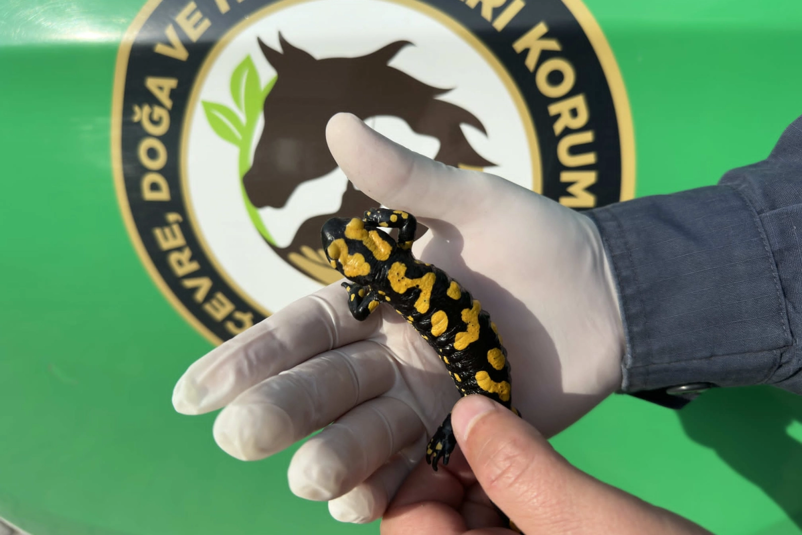 İl Jandarma Komutanlığı Çevre Doğa ve Hayvanları Koruma Timi, Dulkadiroğlu’nda devriye faaliyeti sırasında korumada öncelikli ve azalan varlık durumuna sahip türlerden olan “SARI BENEKLİ SEMENDER” gördü.