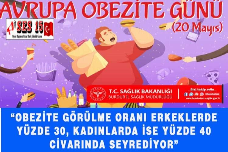 Türkiye'de yetişkinlerin yaklaşık yüzde 59'u aşırı kilo veya obezite sorunu ile karşı karşıya bulunuyor. Obezite görülme oranı erkeklerde yüzde 30, kadınlarda ise yüzde 40 civarında seyrediyor. 20 Mayıs Avrupa Obezite Günü dolayısıyla Burdur İl Sağlık Müdürlüğü tarafından sosyal medya üzerinden yayınlanan bildiri şöyle; " Obezite Nedir?