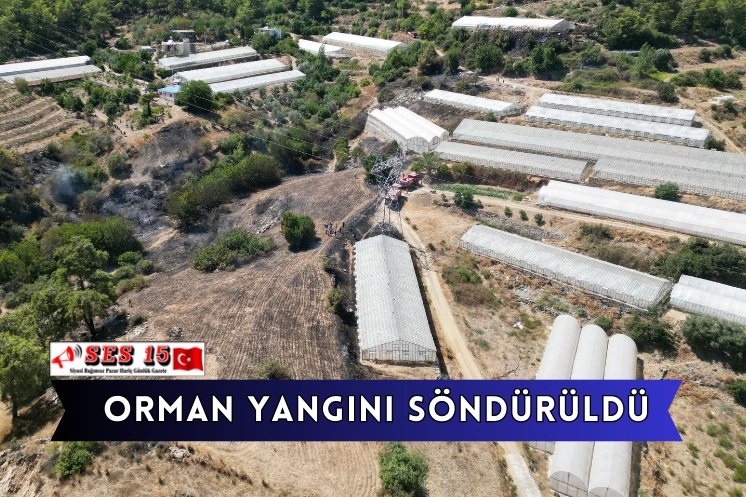 Ekiplerin müdahalesiyle söndürülen yangında yaklaşık 2 hektar ormanlık alan ile 4 sera zarar gördü.