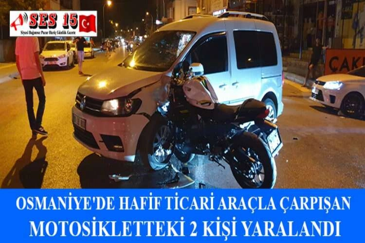 Osmaniye'nin Kadirli ilçesinde hafif ticari araç ile motosikletin çarpıştığı kazada 2 kişi yaralandı. Henüz sürücüleri ile plakaları öğrenilemeyen hafif ticari araç ile motosiklet Cemalpaşa Mahallesi Tevfik Pampal Caddesi'nde çarpıştı. İhbar üzerine kaza yerine polis ve sağlık ekipleri sevk edildi. Yaralanan motosiklet sürücüsü ile yanındaki kişi, sağlık ekiplerinin müdahalesinin ardından hastaneye kaldırıldı. AA