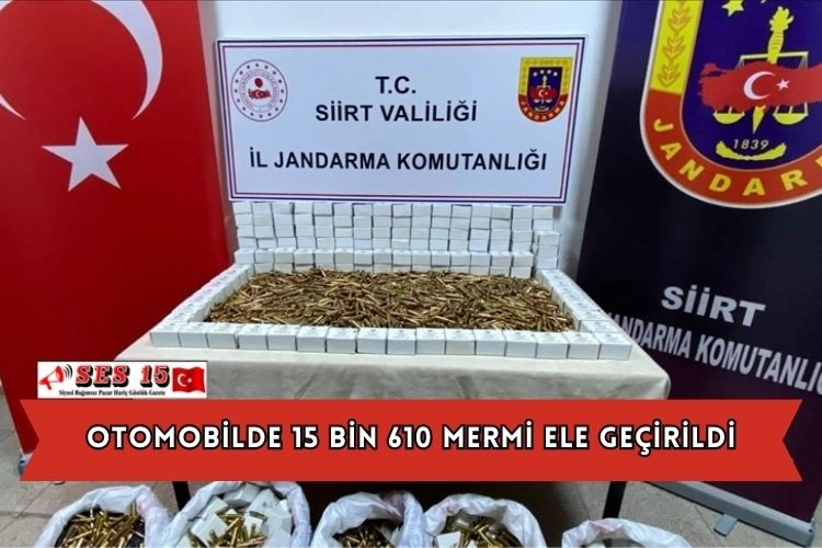 Otomobilde yapılan aramada, değişik çaplarda 15 bin 610 mermi ve bir miktar kubar esrar ele geçirildi, 5 zanlı yakalandı.