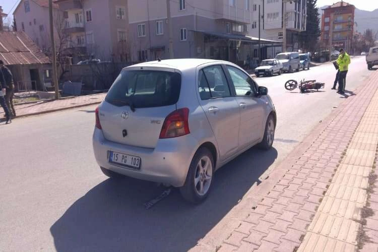 Bucak Mehmet Akif Mahallesi Oruç Reis Caddesi üzerinde otomobille motosikletin çarpışması sonucu trafik kazası meydana geldi. Trafik kazasında 1 kişi yaralandı. Edinilen bilgilere göre bugün saat 12.00 sularında Mehmet Akif Mahallesi Oruç Reis Caddesi’nde otogar istikametinden kahveler istikametine seyir halinde olan 15 PG 103 plakalı otomobil Oruç Reis Caddesi’nde yan yoldan çıkan 15 ABB 059 plakalı motosikletle çarpışması sonucu trafik kazası meydana geldi. Kazada motosiklet sürücü yaralandı. Olay yerine sağlık ekipleri ve trafik ekibi sevk edildi. Yaralı motosiklet sürücüsü ambulansla Bucak Devlet Hastanesine kaldırılarak tedavi altına alındı.