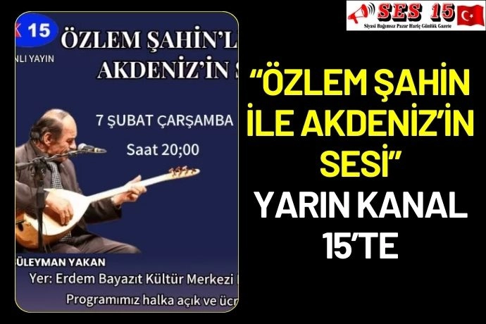 Özlem Şahin’in hazırlayıp sunduğu programın bu haftaki konuğu Türk Halk Müziği Sanatçısı Süleyman Yakan olacak. Özlem Şahin ve konuğu, sevilen türküleri, canlı yayında sizler için seslendirecek. Yarın akşam saat 20.00’de Antalya Erdem Bayazıt Kültür Merkezi’nden yayınlanacak olan “Özlem Şahin ile Akdeniz’in Sesi” programını sakın kaçırmayın.