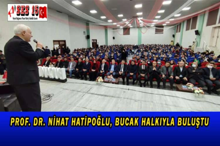 Bucak Belediyesi, İlahiyatçı Yazar Prof. Dr. Nihat Hatipoğlu’nu Bucaklılar ile buluşturdu. Çanakkale Zaferi ve Berat Kandili özel programı Cuma günü saat 20.00’de Müftülük Konferans Salonu’nda yapıldı. Programa İlçe Kaymakamı Erol Tanrıkulu, Belediye Başkanı Emrullah Ünal, Eşi Ayşe Ünal, MAKÜ Rektör Yardımcısı Prof. Dr. Hüseyin Dalgar, Belediye Başkan Yardımcıları Oğuzhan Erdoğan ve Yasin Çiçek, Siyasi Parti Temsilcileri, Kurum Müdürleri, Belediye Meclis Üyeleri ve çok sayıda vatandaş katıldı. Saygı Duruşu ve İstiklal Marşı’nın okunmasıyla başlayan programın açılış konuşmasını yapan Belediye Başkanı Emrullah Ünal, programa katılan herkese teşekkür etti. Prof. Dr. Nihat Hatipoğlu’nu Bucak’ta ağırlamaktan duyduğu memnuniyeti dile getirdi. Programın konuğu İlahiyatçı Yazar Prof. Dr. Nihat Hatipoğlu, “Hz. Muhammet bizim için ebedi liderdir, her yönüyle Müslümanlara en güzel örnektir” diyerek Peygamber Efendimizin hayatından kesitler anlattı.