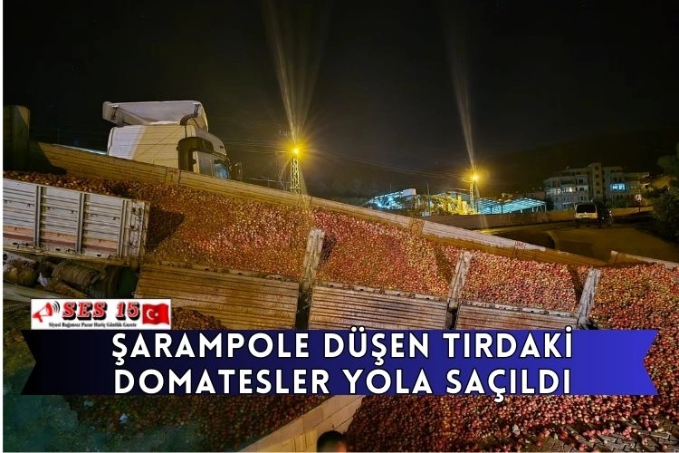 Tırın dorsesindeki domateslerin bir bölümü yola saçıldı.
