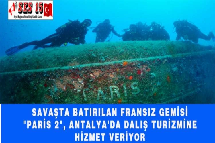 - Birinci Dünya Savaşı'nda Antalya'nın Kemer ilçesi açıklarında batırılan Fransız savaş gemisi "Paris 2", dalgıçlar ve su altı fotoğrafçılarını cezbediyor. Antalya'da Gazipaşa'dan Kalkan'a kadar uzanan sahil şeridindeki 222 dalış noktası su altı tutkunlarına ev sahipliği yapıyor. Antalya ve çevresinde faaliyet gösteren 60 dalış şirketi, su altına profesyonel rehberler eşliğinde dalış turları düzenliyor. Dünyada en iyi 100 dalış bölgesinden birisi olarak gösterilen "Paris 2" batığına yerli ve yabancı turistler ilgi gösteriyor. Kemer ilçesinde dalış turları düzenleyen dalış eğitmeni Suat Karaman, AA muhabirine, dalış sezonuna mayıs itibarıyla başladıklarını, "Paris 2" batığına da günlük turlar gerçekleştirdiklerini söyledi. Karaman, Birinci Dünya Savaşı'nda Yüzbaşı Mustafa Ertuğrul Aker komutasındaki topçu bataryası tarafından batırılan Fransız savaş gemisi "Paris 2"nin 1896'da balıkçı gemisi olarak inşa edildiğini ancak cihan harbinde savaş gemisine çevrilip Akdeniz'e gönderildiğini anlattı. - "33 metre derinlikte yer alıyor" Kemer Yat Limanı'nın yaklaşık 1,5 kilometre açığında düz zemindeki batığın yerinin 1995'te tespit edildiğini hatırlatan Karaman, "Yaz sezonunda batık her gün çok sayıda dalışsever tarafından ziyaret ediliyor." dedi. Ankara'dan dalış turuna katılan 15 kişilik ekipte bulunan dalış eğitmeni Mesut Bozkurt da büyük bir batıkta balıklarla güzel bir dalış gerçekleştirdiklerini ifade etti. "Paris 2"nin üstünde 6 uçaksavar top ve 2 torpil kovanı bulunuyor. 50 metre boyunda, 8 metre eninde ve 551 groston ağırlığındaki batık, 33 metre derinlikte yer alıyor. AA