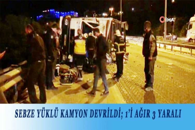 Antalya-Burdur Karayolu üzerinde sebze yüklü kamyon devrildi. Kazada 1’i ağır 3 kişi yaralandı. Edinilen bilgilere göre; Antalya’dan sebze yükleyen ve Burdur İstikametine doğru seyir halinde olan Hikmet Oğuzhan Kaptan yönetimindeki 11 AAG 743 plakalı kamyon dün gece saatlerinde Antalya-Burdur kara yolu Kurna rampalarında virajı alamayarak bariyerlere çarptı. Çarpmanın etkisiyle devrilen kamyonda bulunan 3 kişi yaralandı. Kazayı fark eden vatandaşların ihbarı üzerine olay yerine itfaiye, polis ve 112 Acil Servis ekipleri sevk edildi. Kamyon üzerindeki sebzeler karayoluna saçıldı. Tek taraflı meydana gelen kazada kamyonda bulunan sürücü Hikmet Oğuzhan Kaptan’la Serdar Demir ve Hüseyin Avcı yaralandı. İlk müdahalesi olay yerinde yapıldıktan sonra ambulanslarla Burdur Devlet Hastanesine kaldırılan yaralılardan Avcı’nın durumunun ağır olduğu öğrenildi. Kaza nedeniyle uzun araç kuyruğu oluşan Burdur-Antalya karayolu trafik ekiplerinin bir saatlik çalışmasının ardından trafiğe yeniden açıldı.