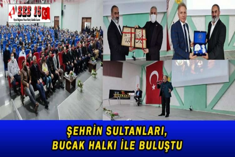 Bucak Belediyesi’nin sosyal ve kültürel etkinlikleri kapsamında “Şehrin Sultanları” Bucak halkı ile buluştu. Bucak Müftülüğü Konferans Salonunda dün saat 20.00’de düzenlenen programa Bucak Kaymakamı Erol Tanrıkulu, Belediye Başkanı Emrullah Ünal, AK Parti İlçe Başkanı Mustafa Oğuz, Belediye Başkan Yardımcısı Oğuzhan Erdoğan ve Yasin Çiçek, Belediye Meclis Üyeleri, kurum müdürleri, muhtarlar ve vatandaşlar katıldı. Mikail Şimşek’in sunumu ile başlayan programda Şehrin Sultanları Dursun Ali Erzincanlı’nın şiir ve naatı, Veysel Çelikdemir’in kum sanatı gösterisi ve Servet Tekin'in ilahileri-ezgileri katılımcıların beğenisini kazandı. Manevi duygulara hitap eden programda katılımcılar, güzel bir akşam geçirdi.