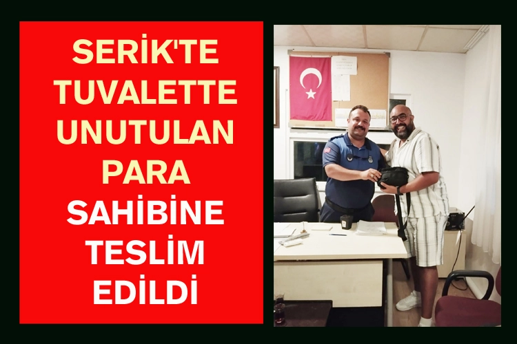 Belek Turizm Merkezinde bir kişi, umumi tuvalette, bulduğu çantayı Serik Belediyesi zabıta ekiplerine teslim etti.