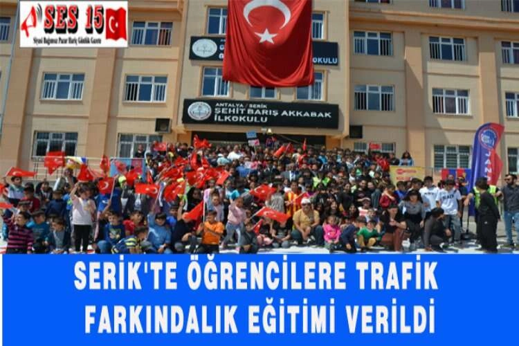 Serik ilçesinde Karayolları Trafik Haftası etkinlikleri kapsamında İl Milli Eğitim Müdürlüğü, İl Jandarma Komutanlığı ve İl Emniyet Müdürlüğü koordinesinde hazırlanan Trafikte Farkındalık Eğitimi verildi. Gebiz Şehit Barış Akkabak ilkokulunda gerçekleştirilen eğitime 15 öğretmen ve 450 öğrenci katıldı. İlçe Jandarma Komutanı Jandarma Üsteğmen Ayhan Aktürk, İlçe Emniyet Müdürü Cengiz Usta, İlçe Milli Eğitim Müdürü İkram Ekiz de programa katıldı. 5 dakikada 5 trafik işareti konulu eğitimde İl Milli Eğitim Müdürlüğünce okullara hazırlanan linkler üzerinden gönderilen eğitim modülü akıllı tahtalarda açılarak öğrencilere anlatıldı. Trafik kurallarına duyarlılığı ve davranışları ile diğer sürücülere örnek olan, herhangi bir trafik cezası almadığı tespit edilen Derya Ulaş, Ali Yeşil, Mehmet Mülayım, Mustafa Güzel ve Ramazan Yalçın’a plaket ve çiçek verildi. Hafta dolayısıyla düzenlenen şiir yarışmasında dereceye giren öğrencilere ödülleri verildi. AA