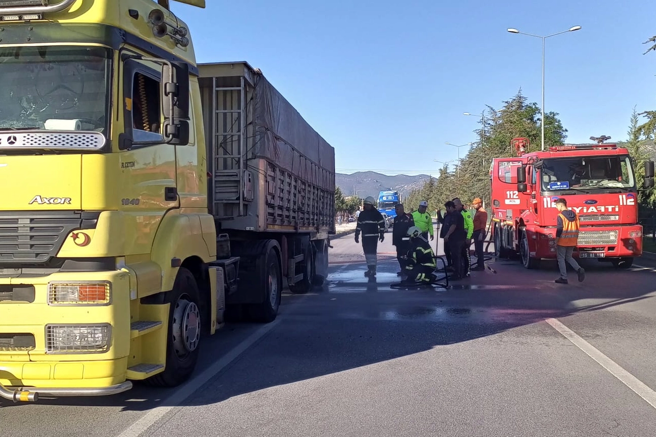 Ekiplerin hızlı müdahalesi ile yangın büyümeden söndürüldü. Edinilen bilgilere göre; bugün saat 16.00 sularında Burdur-Antalya Karayolu üzerinde Burdur istikametinden Antalya istikametine doğru seyir halinde olan R.Ç. yönetimindeki 64 FF 528 plakalı tırın TÜV-TÜRK İstasyonu yakınlarında sağ arka lastiğinden duman yükselmeye başladı. Tır sürücüsü R.Ç. dumanı fark ederek tırı yol kenarına çekip 112 Acil Çağrı Merkezine ihbarda bulundu. İhbar üzerine olay yerine itfaiye ve polis ekipleri sevk edildi. Bucak Belediyesi İtfaiye Müdürlüğü ekiplerinin zamanında müdahale etmesiyle sağ arka lastikte çıkan yangın büyümeden söndürüldü, olası bir facia önlendi. Yangının balataların ısınması sonucu çıktığı tahmin edilirken, tırda küçük çapta maddi hasar oluştu.