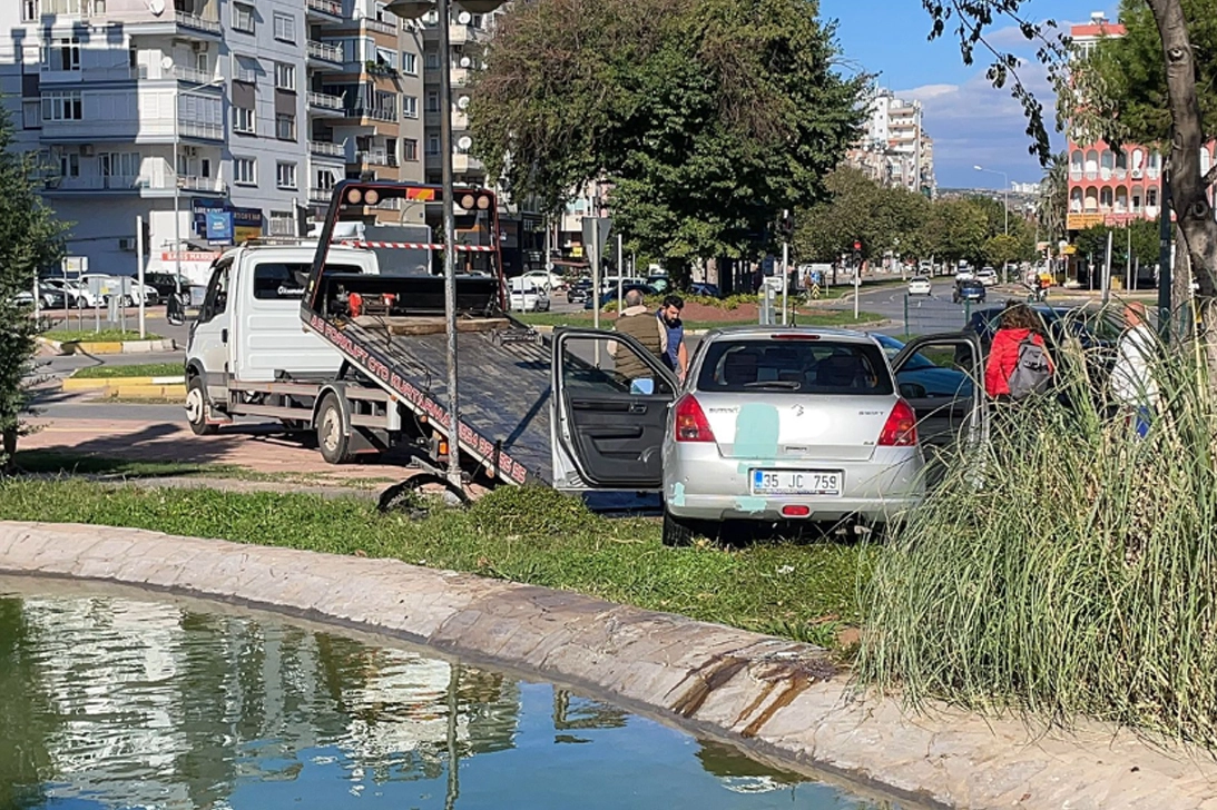 Cemile A'nın kullandığı 35 JC 759 plakalı otomobil, Muratpaşa Mahallesi Opera Kavşağı'nda, Tarık Akan Parkı'ndaki havuza düştü.