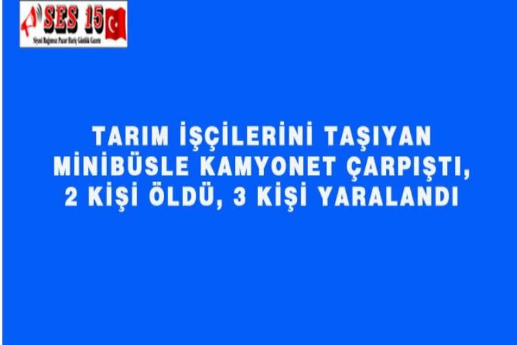 Konya'nın Beyşehir ilçesinde tarım işçilerini taşıyan minibüsle kamyonetin çarpışması sonucu 2 kişi öldü, 3 kişi yaralandı. Şaban K. (35) idaresindeki 34 PGS 572 plakalı kamyonet, Beyşehir-Isparta kara yolunun 8. kilometresinde, karşı yönden gelen ve tarım işçilerini taşıyan Emre E. (21) yönetimindeki 42 B 5404 plakalı minibüsle çarpıştı.