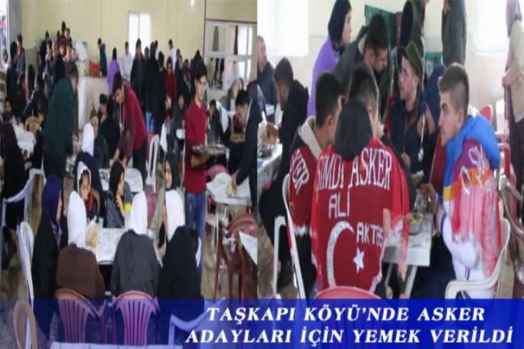 Burdur Merkeze bağlı Taşkapı Köyü'nde askere gidecek gençler için yemek düzenlendi. Köy Düğün Salonunda düzenlenen yemeğe 1998/1 tertip olarak askere gidecek olan 6 genç, aileleri, köylüler ve çevre köylerden vatandaşlar katıldı. Askere gidecek olan gençler, yemeğe katılanları kapıda karşıladı. Taşkapı Köyünden askere gidecek gençler için her zaman yemek düzenlendiğini anlatan Taşkapı Köyü Muhtarı Aydemir Altay, bu etkinliği yapmaya her zaman devam edeceklerini ifade ederek köyde birlik ve beraberliğin ön planda olduğunu belirtti.