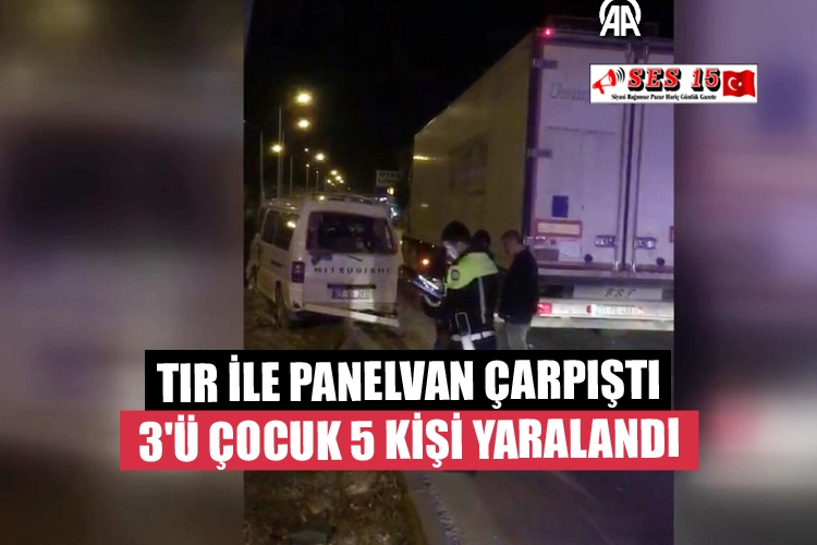 Mersin'in Erdemli ilçesinde tır ile panelvanın çarpışması sonucu 3'ü çocuk 5 kişi yaralandı. A.B. yönetimindeki 31 ASM 113 plakalı tır, Limonlu Mahallesi'nde H.Y. idaresindeki 27 UU 203 plakalı panelvan ile çarpıştı. İhbar üzerine olay yerine sağlık ve polis ekipleri sevk edildi. Kazada, panelvanda bulunan 3'ü çocuk 5 kişi yaralandı. Yaralılar ilk müdahalelerinin ardından sağlık ekipleri tarafından Erdemli Devlet Hastanesine kaldırıldı.