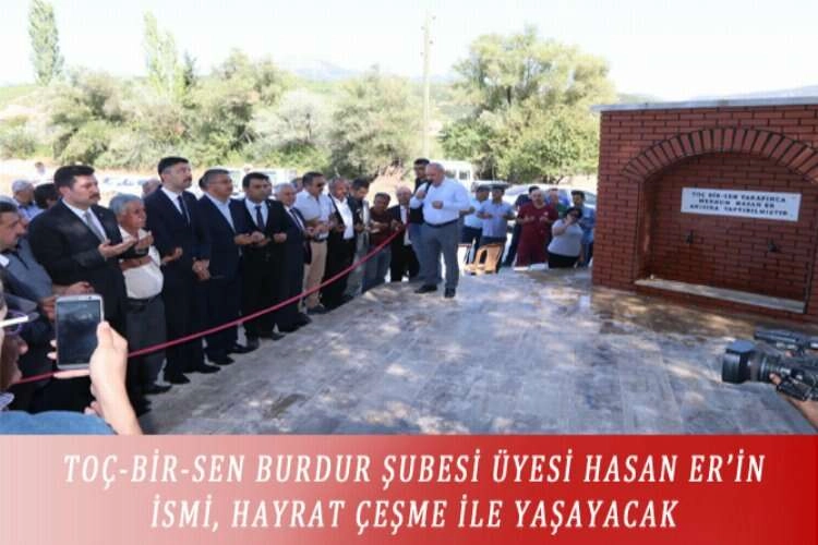 Burdur’un Çeltikçi İlçesi’ne bağlı Kuzköy Köyü girişinde Tarım ve Orman Çalışanları Birliği Sendikası Burdur Şube Başkanlığı tarafından Denetleme Kurulu Üyesi Merhum Hasan Er anısına yaptırılan çeşme dün saat 12.00’de düzenlenen törenle hizmete açıldı. Geçtiğimiz yıl Ramazan ayı içinde vefat eden Bucak Tarım ve Orman İlçe Müdürlüğü’nde Veteriner Sağlık Teknisyeni olarak görev yapan TOÇ-BİR-SEN Burdur Şubesi Denetleme Kurulu Üyesi Hasan Er adına yaptırılan hayrat çeşmenin açılış törenine Çeltikçi Kaymakamı Abdullah Özübek, Bucak Belediye Başkanı Emrullah Ünal, TOÇ-BİR-SEN Genel Başkan Yardımcıları Fatih Doğan ve Harun Sarıdoğan, İl Genel Meclis Başkanı Murat Akbıyık, Siyasi Partilerin İl ve İlçe Temsilcileri, STK Temsilcileri, kurum müdürleri, Memur-sen hizmet kolu başkanları, Tarım ve Orman Müdürlüğü personeli, Merhum Hasan Er’in ailesi ve yakınları ve Kuzköy halkı katıldı. Programda Kanal 15 mikrofonlarına konuşan ve hayrat hakkında bilgi veren TOÇ-BİR-SEN Burdur Şube Başkanı Ömer Cebeci, sendika olarak üyelerinin sağlığında yanlarında oldukları gibi vefatından sonra da geride kalanların acısını paylaşmayı ve hafifletmeyi amaçladıklarını aktardı. TOÇ-BİR-SEN Genel Başkan Yardımcıları Fatih Doğan, Merhum Hasan Er’in anısını yaşatmak adına böyle bir çeşme yapıldığını ifade ederek hayratın yapımında emeği geçen herkese teşekkür etti. Çeltikçi Kaymakamı Abdullah Özübek, çeşmenin yapımına katkı sağlayan herkese teşekkür ederek böyle bir hayratın yapılmasının örnek bir proje olduğuna vurgu yaptı. Konuşmaların ardından dua edildi ve protokol üyeleri tarafından TOÇ-BİR-SEN Burdur Şubesi Denetleme Kurulu Üyesi Hasan Er adına yaptırılan hayrat çeşmenin açılış kurdelesi kesildi. Katılımcılara öğle yemeği ikram edilmesiyle program sona erdi.
