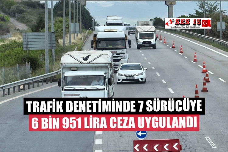 Çalışmada trafik kurallarını ihlal ettikleri belirlenen 7 aracın sürücüsüne 6 bin 951 lira ceza uygulandı.