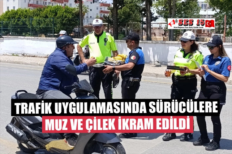İlçe Kaymakamı Bilal Bozdemir, İlçe Emniyet Müdürü Hanifi Umar, İlçe Jandarma Komutanı Jandarma Üsteğmen Kadir Dölek'in de katıldığı uygulamada, sürücülere muz ve çilek ikramında bulunuldu.