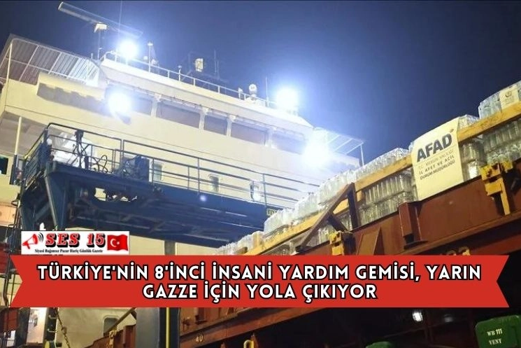 Son olarak Vakıflar Genel Müdürlüğü iş birliğiyle hazırlanan, 8'inci insani yardım gemisi yarın saat 13.00'da Mersin Limanı'ndan hareket edecek.