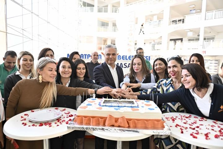 Belediye fuayesinde Turunç Masa çalışanlarıyla pasta kesen Belediye Başkanı Ümit Uysal, “Bütün Muratpaşa halkına kamu hizmetlerini eşit şekilde ulaştırmakta Turunç Masa en önemli gücümüzdür” dedi.