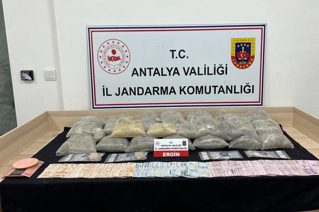 Belirlenen adrese yapılan baskında, 46 kilogram eroin, 1 hassas terazi, 3 kurutma tepsisi, 2 öğütücü makinası ve 19 bin 600 lira ele geçirildi.