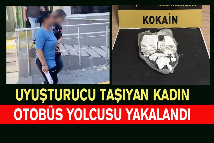 Polis ekibi, otobüste yaptığı kontrollerde yolcu Melek Y'nin (50) yapılan üst aramasında, 100,23 gram kokain ele geçirdi.