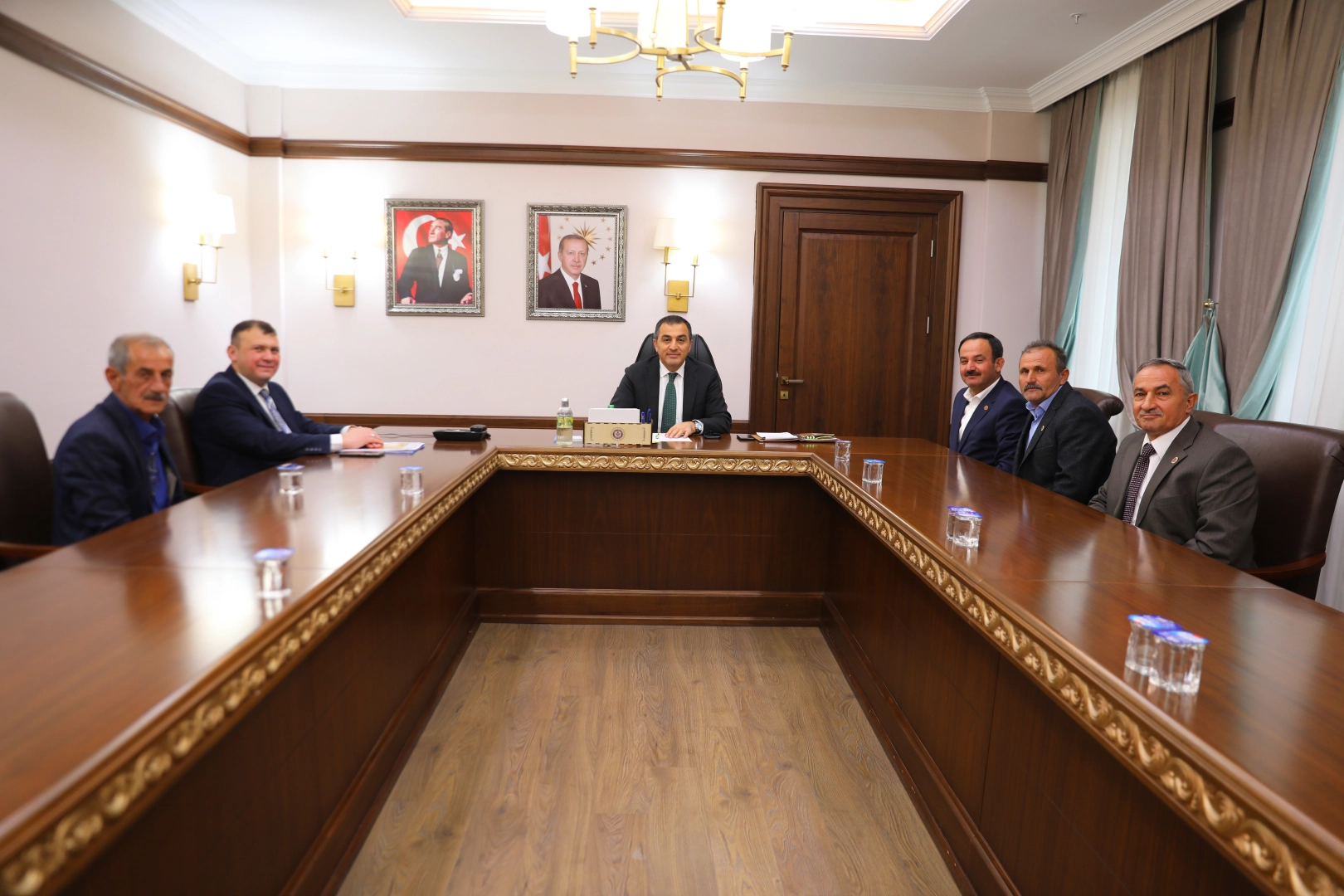 Yoğun toplantı mesaisini Muhtarları kabul ederek tamamlayan Vali Öksüz, Kayaaltı Köyü Muhtarı Tahsin Akça, Ulupınar Köyü Muhtarı Hakan Umman ve Yassıgüme Köyü Muhtarı Şahin Abbak’le bir süre görüşerek hasbihal etti.