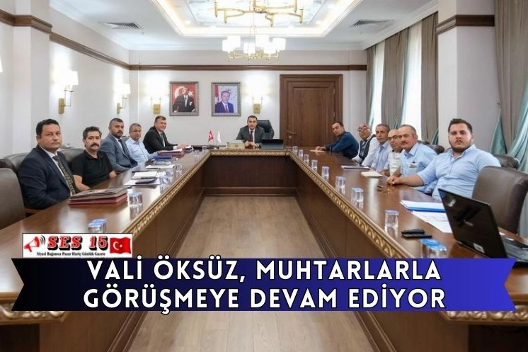 İl Özel İdaresinde başkanlık ettiği İl Encümeni Toplantısı sonrası muhtarları kabul eden Vali Öksüz, Azaları ile birlikte Yeşilova Gençali Köyü Muhtarı Bayram Karagöz ile aza Şerafettin Özdemir, Tefenni Bayramlar Köyü Muhtarı Murat Şengün, Karamanlı Bademli Köyü Muhtarı İbrahim Özsoy, Merkez Bozlar Köyü Muhtarı Fikret Arslan ve azası Hidayet Erdem ile görüşerek talep ve sorunlarını dinledi. Vali Öksüz’ün Muhtarlarla yaptığı görüşmede İl Özel İdare Birim Müdürleri ve personel yer aldı.