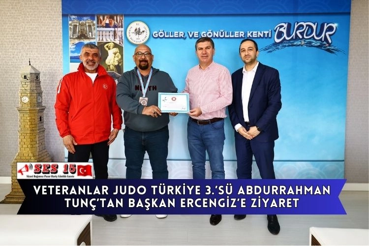 Ankara’da Türkiye Judo Federasyonu tarafından düzenlenen Spor Toto Veteranlar Türkiye Judo Şampiyonası’nda 100 kg kategorisinde Türkiye 3.’sü olan Burdur Belediyesi Personeli Abdurrahman Tunç, elde ettiği başarı sonrası Burdur Belediye Başkanı Ali Orkun Ercengiz’i makamında ziyaret etti.