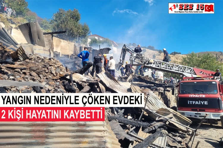 Yangın sonrası çöken evin enkazında yapılan aramalarda 2 kişinin cansız bedeni bulundu.