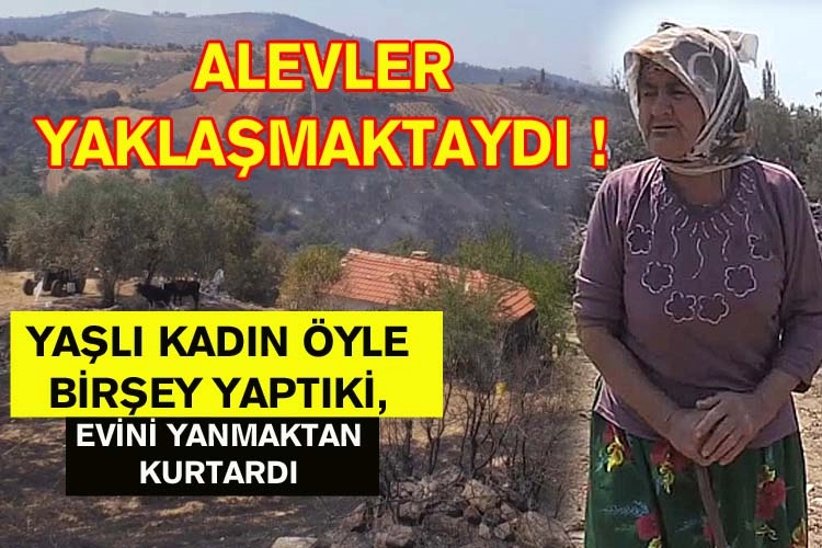 Manisa'nın Gördes ilçesinde başlayıp Salihli ve Gölmarmara ilçelerine ulaşan orman yangınına müdahale devam ediyor. Tedbir amacıyla boşaltılan Salihli'deki Kale Mahallesi'nde yaşayan Karaağaç (70), 14 Ağustos'ta çıkan yangının mahalleye doğru yaklaştığını fark edince tırmıkla evin etrafındaki kuru otları temizledi. Bu sayede evin çevresinde etkili olan alevler, eve ulaşamadı.