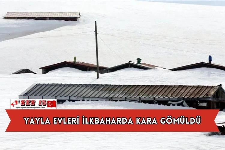Kar yağışı nedeniyle vatandaşların yazın kullandığı yaylalar, beyaza büründü. Kar, yayla evlerinin çatısına kadar yükseldi.